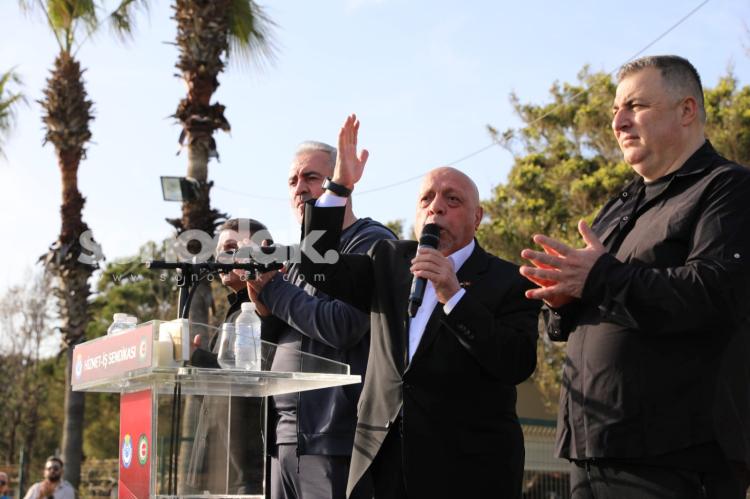 MARDİN (İGFA) – Karşılama merasiminde bir selamlama konuşması yapan Hak-İş Konfederasyonu Genel Başkanı ve Hizmet-İş Sendikası Genel Lideri Mahmut Arslan, Türkiye’nin dört bir yanından gelen iştirakçilere teşekkür ederek, bu buluşmanın büyük bir moral ve motivasyon kaynağı olduğunu söz etti. Arslan, “Birlik ve beraberliğimizin sembolü olan bu karşılama bizim için büyük bir gurur kaynağıdır. Yeterli ki varsınız, âlâ ki buradasınız” dedi.