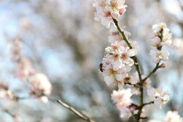 Kırklareli’nde hava sıcaklığının artmasıyla badem ağaçları çiçek açtı.