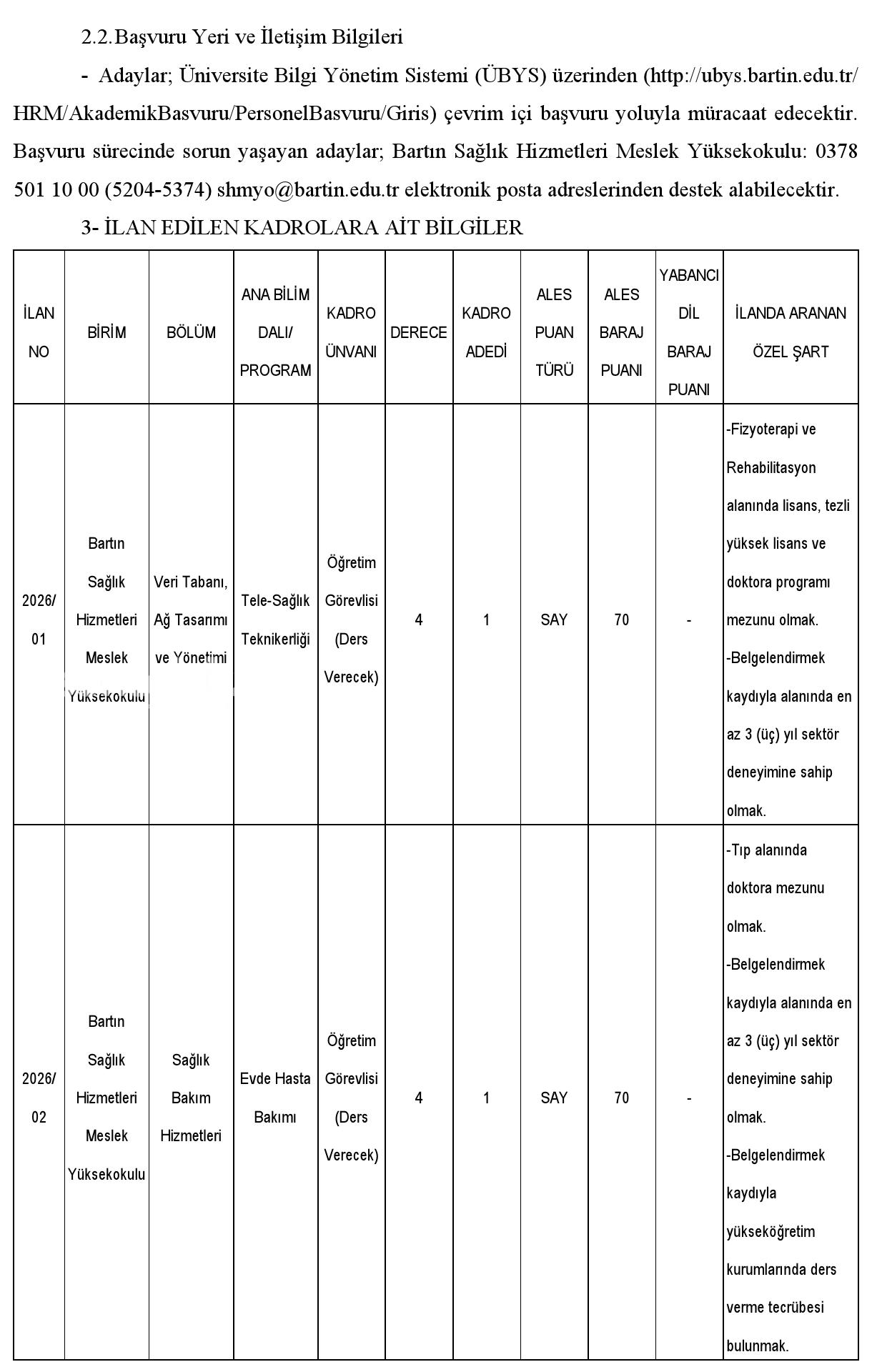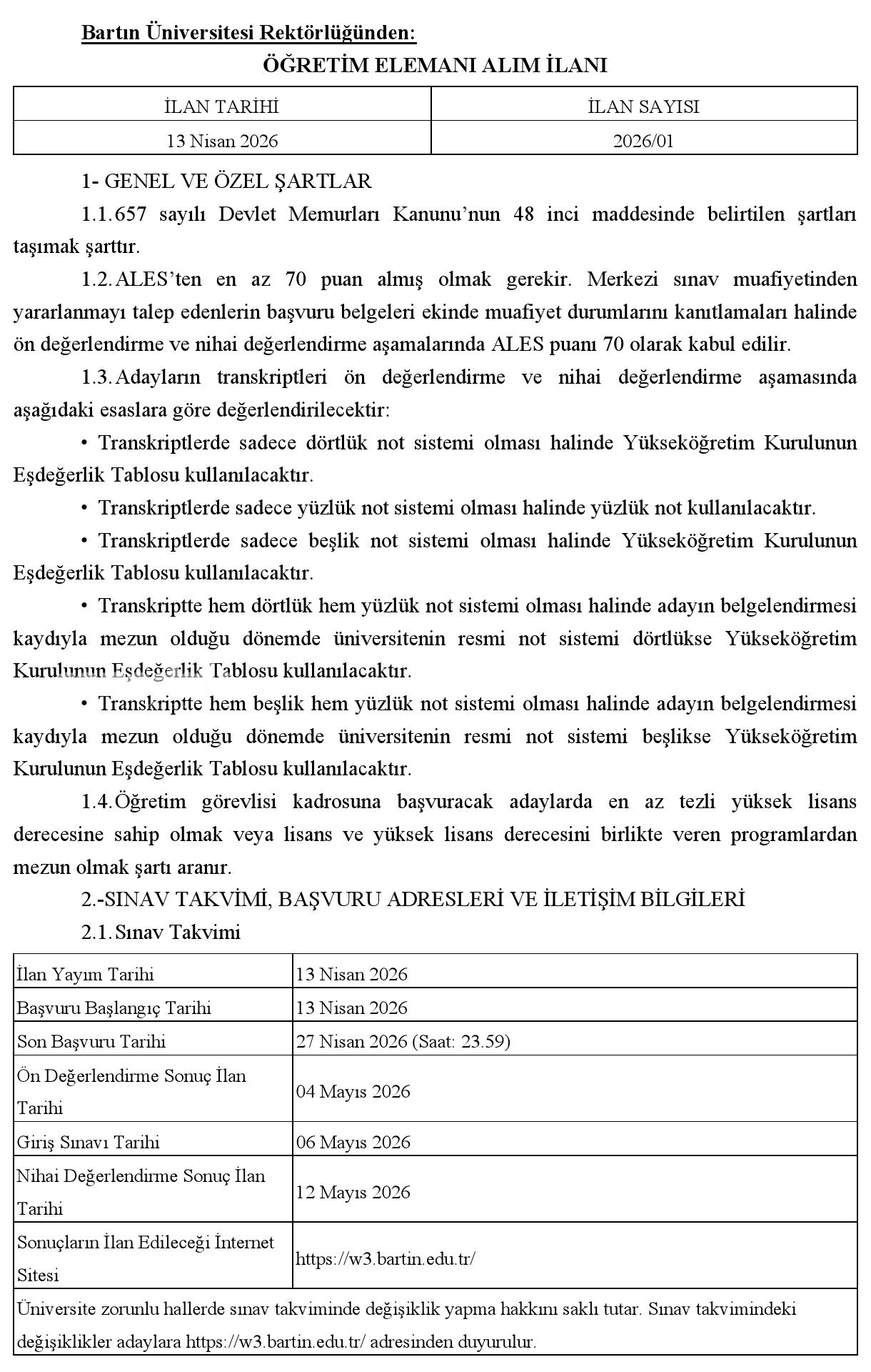 1.Adaylar son müracaat tarihi olarak belirtilen gün ve saate kadar çevrim içi müracaat yapmakla yükümlüdür. Posta yahut şahsen yapılan müracaatlar dikkate alınmayacaktır.
