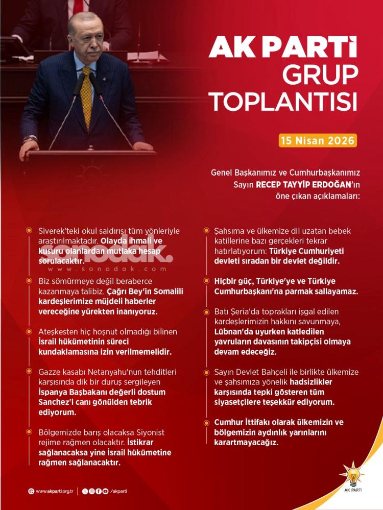 ANKARA (İGFA) – Cumhurbaşkanı ve AK Parti Genel Lideri Recep Tayyip Erdoğan, partisinin Türkiye Büyük Millet Meclisi’ndeki küme toplantısında yaptığı konuşmada, güç başta olmak üzere birçok alanda hayata geçirilen projeleri kıymetlendirdi.