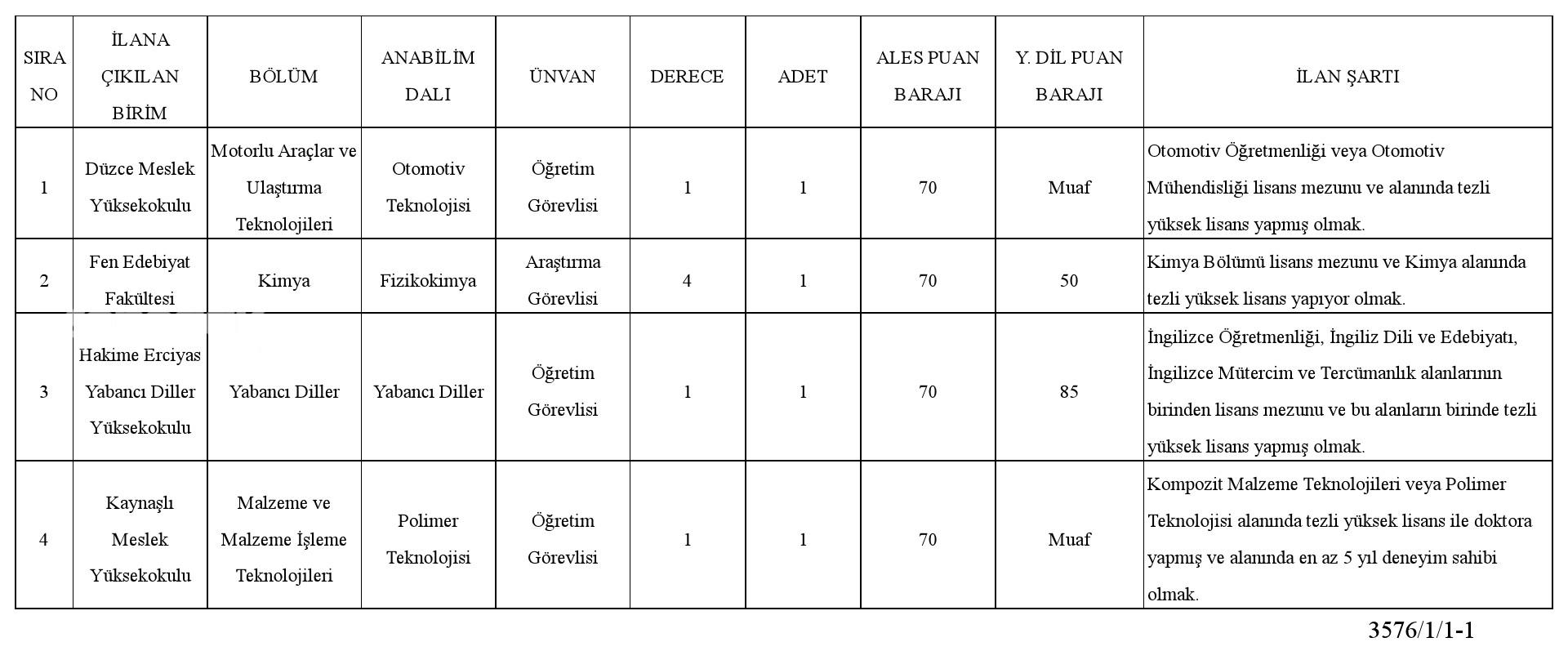 Düzce Üniversitesi Rektörlüğünden: