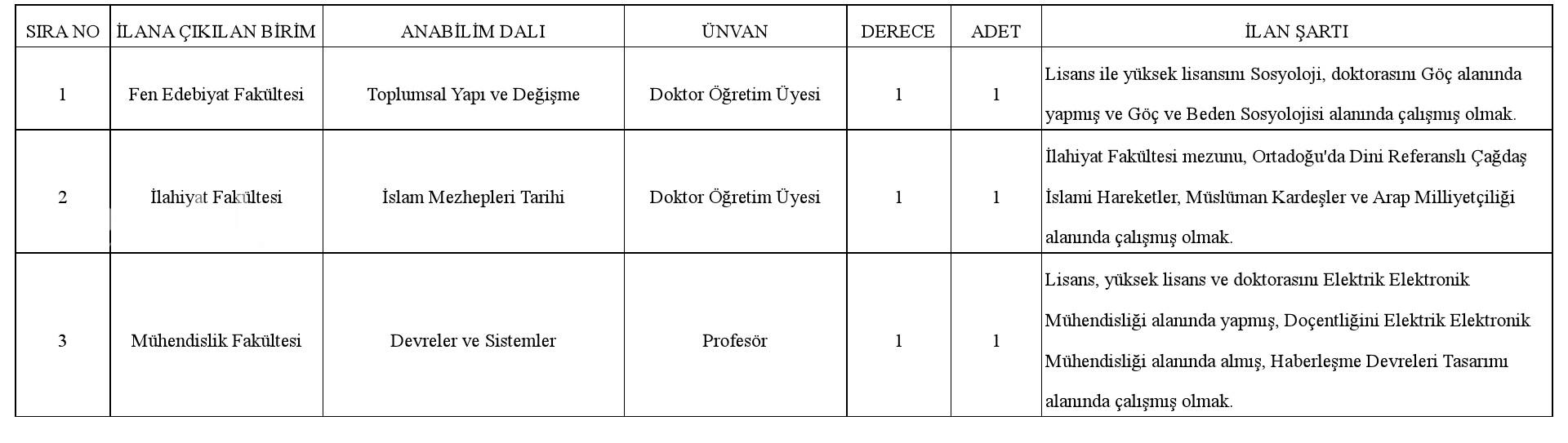 ÖĞRETİM ÜYESİ ALIM İLANI