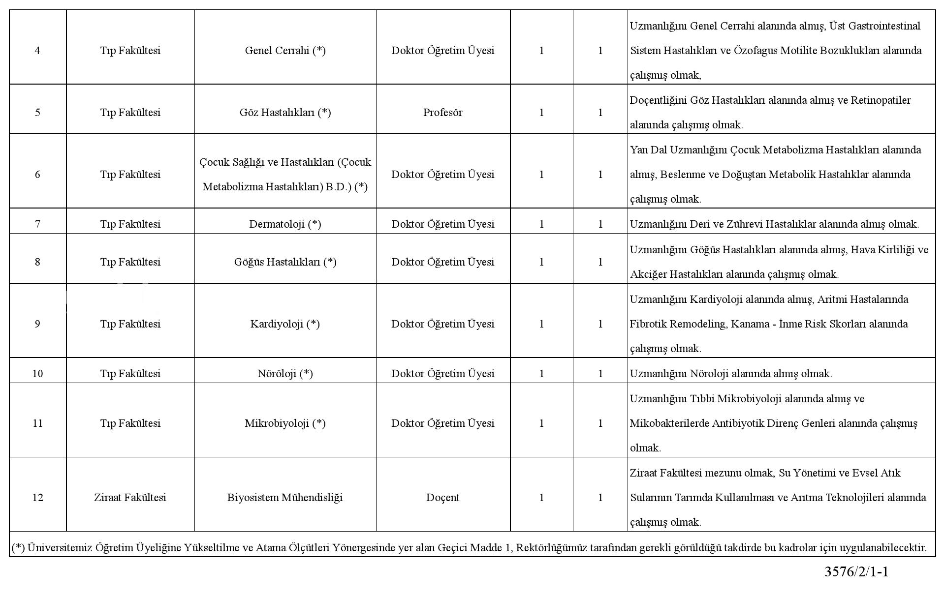 Üniversitemiz ünitelerine; 2547 sayılı Kanunun, Öğretim Üyeliğine Yükseltilme ve Atanma Yönetmeliğinin ve Üniversitemiz Öğretim Üyeliğine Yükseltilme ve Atanma Ölçütleri Yönergesinin ilgili unsurlarına nazaran öğretim üyesi alınacaktır. Müracaat edecek adayların Devlet hizmetine girmede aranılan genel kaidelere sahip olmaları gerekmektedir.
