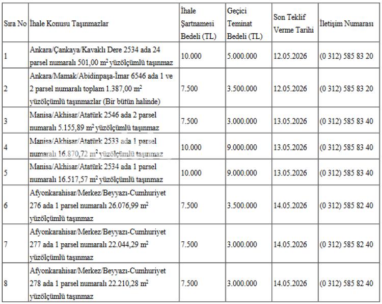 Bugünkü Resmi Gazete’de yayımlanan ilana nazaran özelleştirme kapsamındaki taşınmazlar, farklı kentlerde yer alıyor. Bunlar ortasında Ankara, Manisa ve Afyonkarahisar vilayetlerinde bulunan çeşitli büyüklüklerdeki yerler yer almakta. İhalelere katılacak yatırımcılar, her taşınmaz için farklı başka teklif sunacak ve her bir taşınmaz için İhale Şartnamesi almak zorunda olacaklar.