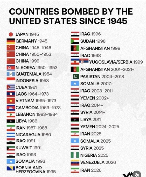 World Visualized’in yayınladığı bir raporda ise ABD’nin 1945 yılından beri bombaladığı ülkeleri listeledi.