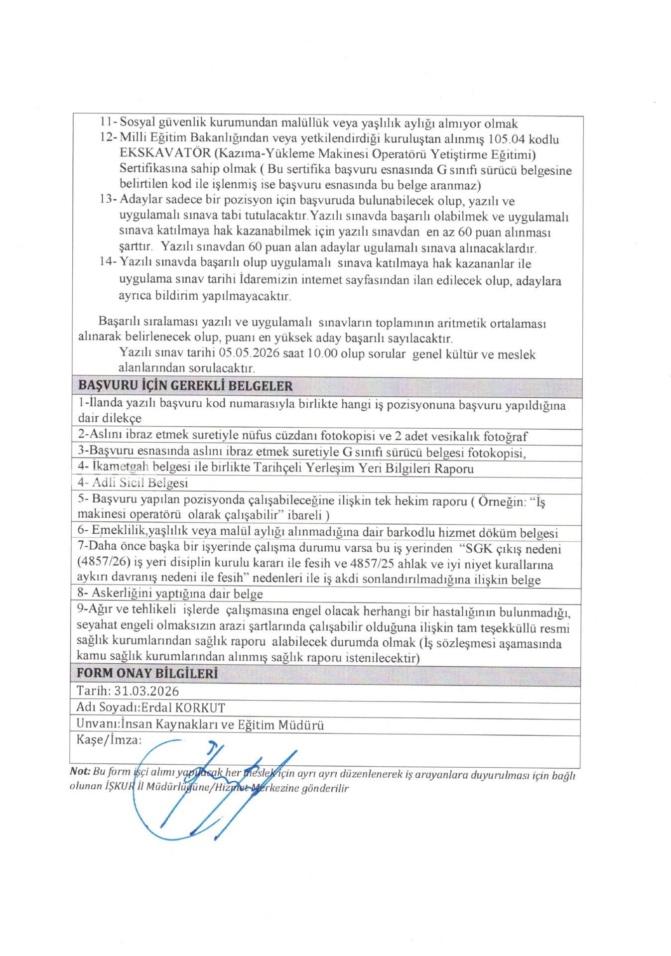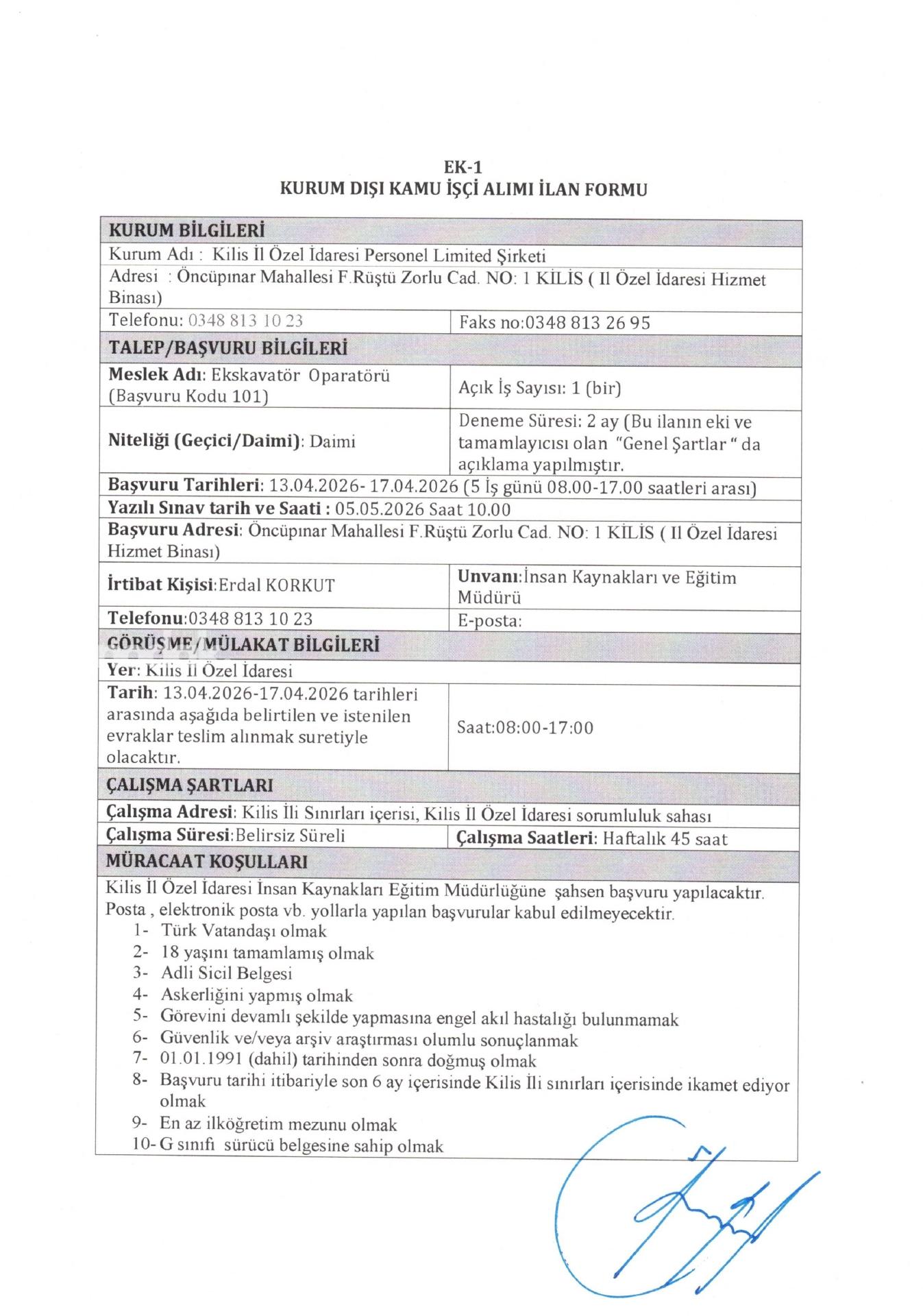 Kilis Vilayet Özel Yönetimi 1 Personel Alacak. Son müracaat tarihi 17 Nisan 2026