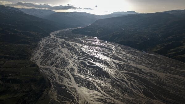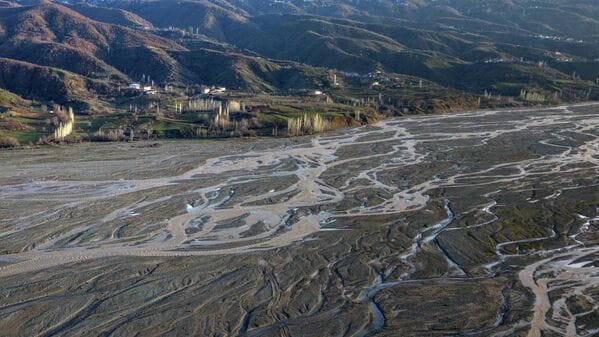 Yüksek rakımlardaki karların erimesiyle yamaçlarda oluşan su izleri ve çay yatağındaki kumlarda meydana gelen doğal desenler, bölgede dikkat çekici görüntüler oluşturuyor.