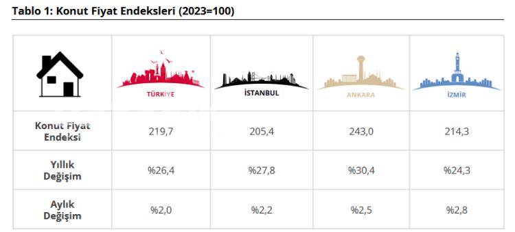 Mart ayında İstanbul’da aylık yüzde 2,2, Ankara’da yüzde 2,5 ve İzmir’de yüzde 2,8 oranında artış kaydedildi. Yıllık bazda ise İstanbul’da yüzde 27,8, Ankara’da yüzde 30,4 ve İzmir’de yüzde 24,3’lük yükseliş görüldü.