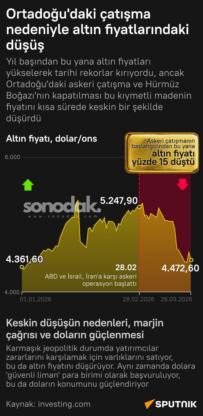 Yıl başından bu yana altın fiyatları yükselerek tarihi rekorlar kırıyordu, ancak Ortadoğu'daki askeri çatışma ve Hürmüz Boğazı'nın kapatılması bu kıymetli madenin fiyatını kısa sürede keskin bir şekilde düşürdü.
