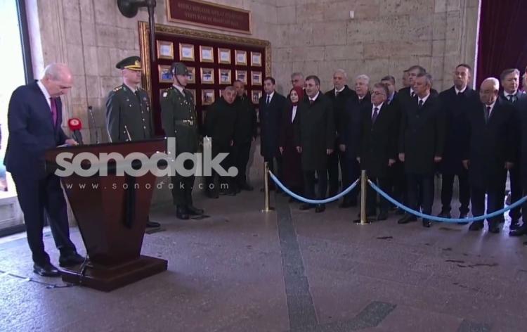 Cumhurbaşkanı Yardımcısı Cevdet Yılmaz ile devlet erkanın da hazır bulunduğu merasimde Kurtulmuş, Misak-ı Ulusal Kulesi’nde Anıtkabir Özel Defteri’ni imzaladı.