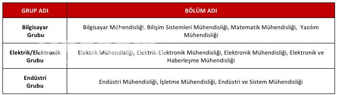 Mühendislik alanından imtihana girecek olan adayların aşağıdaki tabloda belirtilen mühendislik kümelerine nazaran mezun oldukları/olacakları mühendislik kısmına uygun mühendislik kümesinden imtihana girmeleri mecburî olup, aşağıdaki tablo doğrultusunda imtihan kümesi tercihi yapılmalıdır. İmtihan Kümesini kusurlu seçen adayların kümeleri Banka tarafından değiştirilecektir.