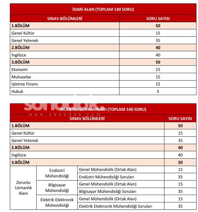 İmtihan soru dağılımı aşağıdaki tabloda yer almaktadır.